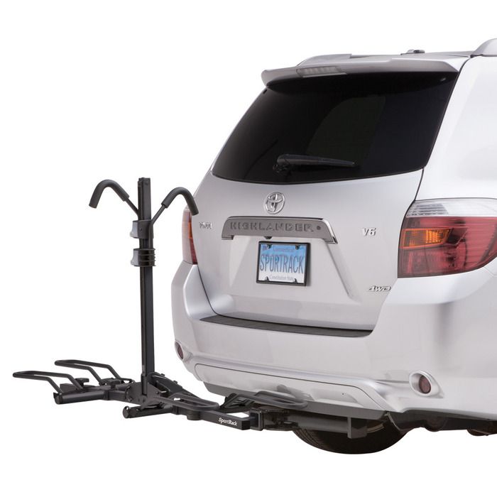 Porte-vélos universel avec attelage de luxe Universal de SportRack. Support à 2 vélos pour récepteurs 1-1/4"et 2". Finition: noir. Ce support offre la commodité et la facilité de chargement d’un support d’attelage de plate-forme à un excellent rapport qualité-prix, et son ajustement lui permet de transporter une large gamme de styles de vélos. Les berceaux de roue coulissants peuvent s'adapter à pratiquement tous les empattements et toutes les largeurs de pneu, et les crochets de cadre en caoutchouc réglables permettent de fixer vos vélos aussi simple que possible.