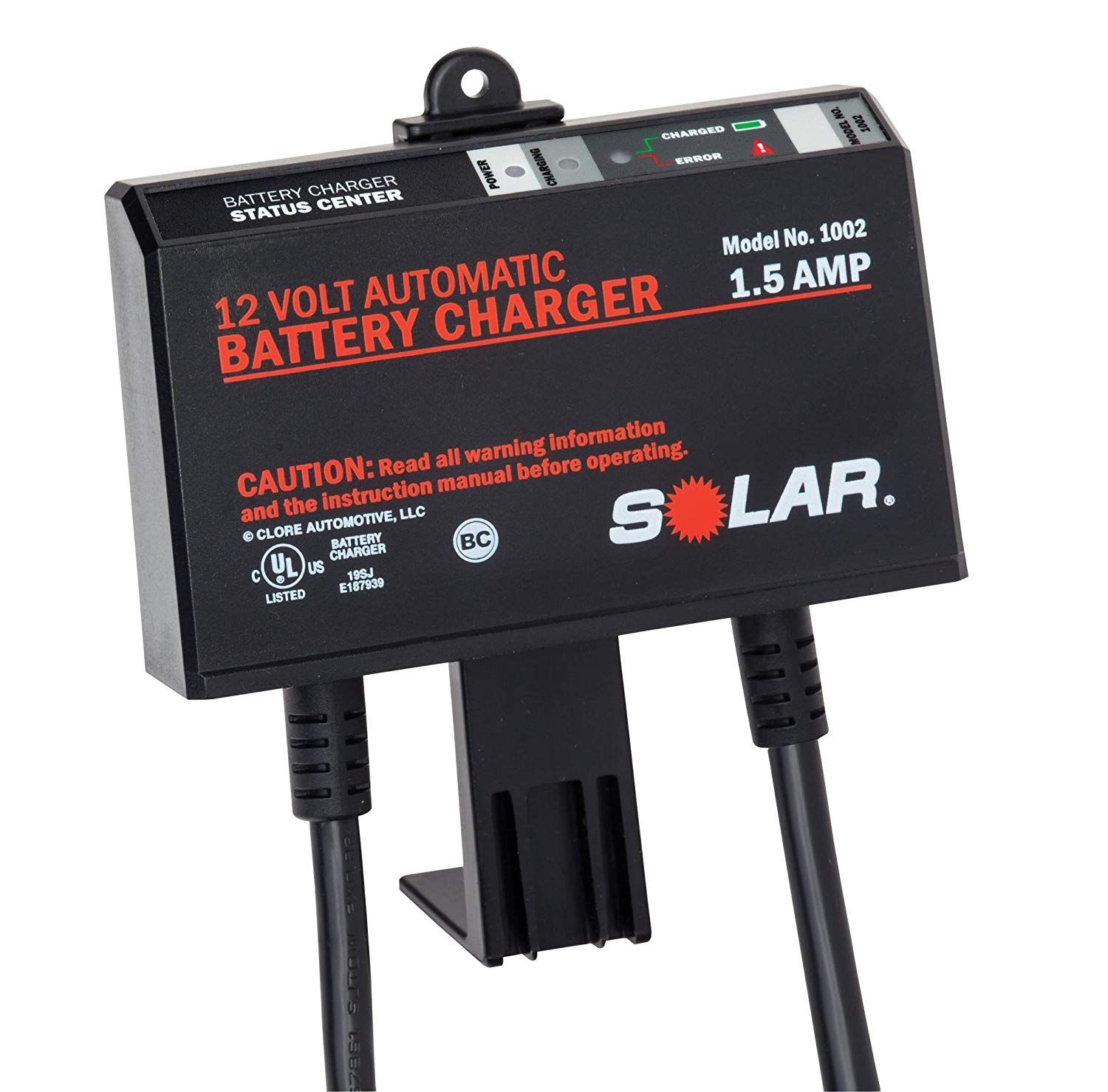 Chargeur automobile intégré de 1,5 A, 12 volts, charge intégrée et fonctionnement automatique, le Solar 1002 allie commodité et puissance de charge fiable dans un design compact et léger. Parfait pour garder les piles en fonction de la saison en parfait état. Ce chargeur utilise un circuit de contrôle de régulation de tension qui surveille en permanence la tension de la batterie et allume et éteint automatiquement la sortie, en le protégeant contre les surcharges. Ce chargeur de batterie est conçu pour rester connecté à la batterie.
